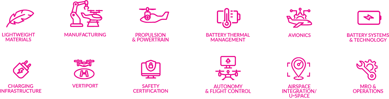 Explore in-depth sessions on: Type certification pathways and FAA alignment; Battery system safety, fire mitigation, and lightweight energy storage; High-voltage system integration and thermal management; Autonomous and piloted flight control; Composites, propulsion, and airframe optimization; Digital twin validation, system simulation, and software certification; Urban air traffic management and vertiport integration; MRO strategies and lifecycle planning for new fleets